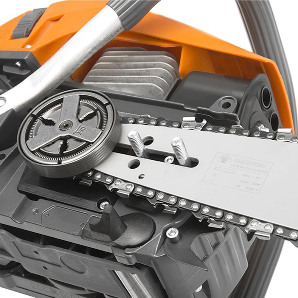 o długości 45 cm oraz łańcuch 0,325” DAEWOO. Ergonomiczny uchwyt i