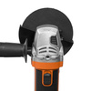 posiada osłonę tarczy chroniącą użytkownika przed iskrami oraz odłamkami podczas pracy.