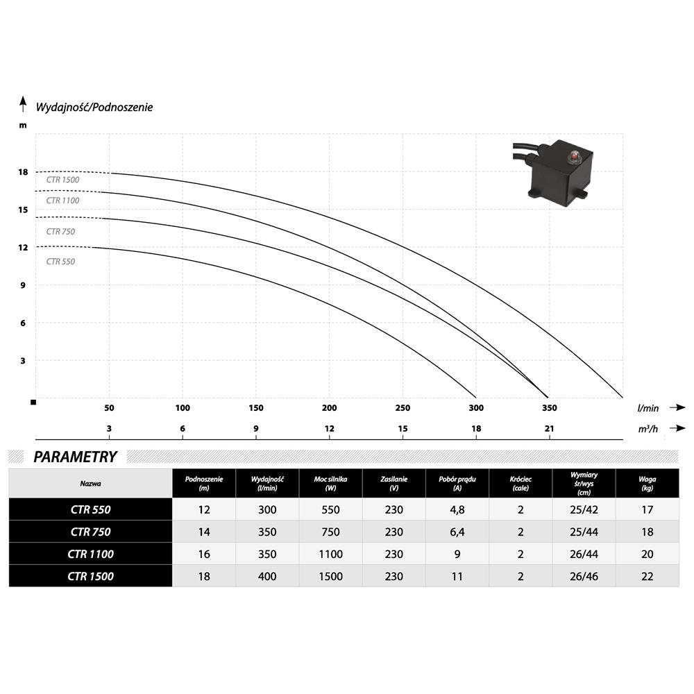 Pompa zatapialna CTR 1100 przeznaczona do pompowania ścieków z szamb