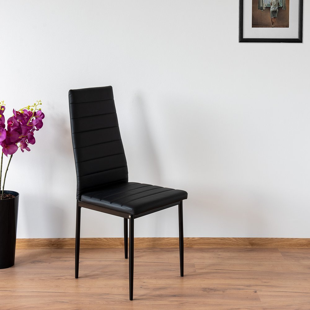 z obiciem z ekoskóry w kolorze czarnym. Jest to mebel o eleganckim, nowoczesnym wyglądzie, świetnie będzie współgrać