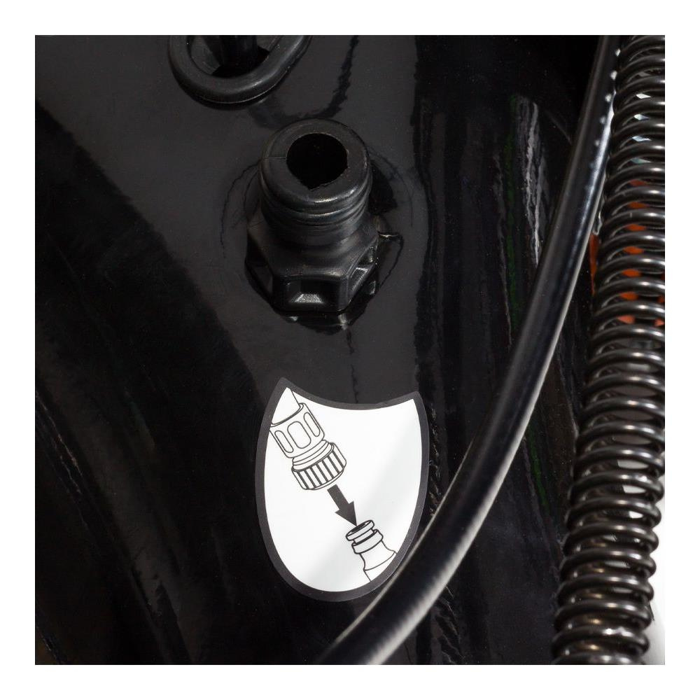 wystarczy podłączyć wąż ogrodowy z wodą do szybkozłącza na obudowie oraz