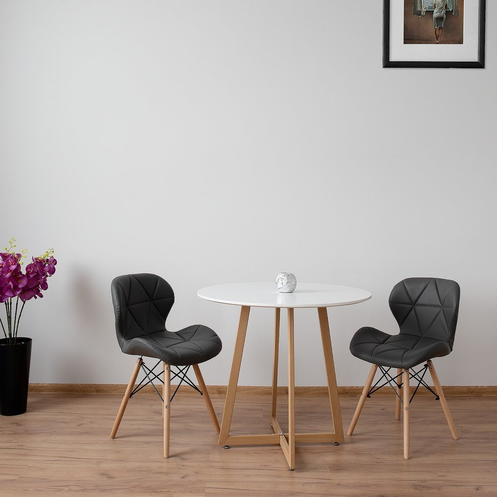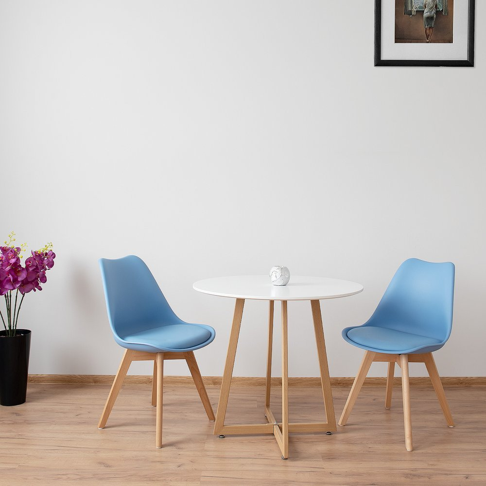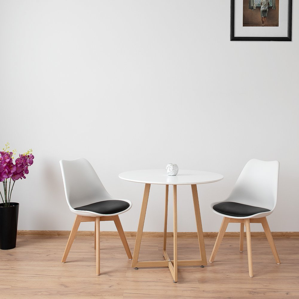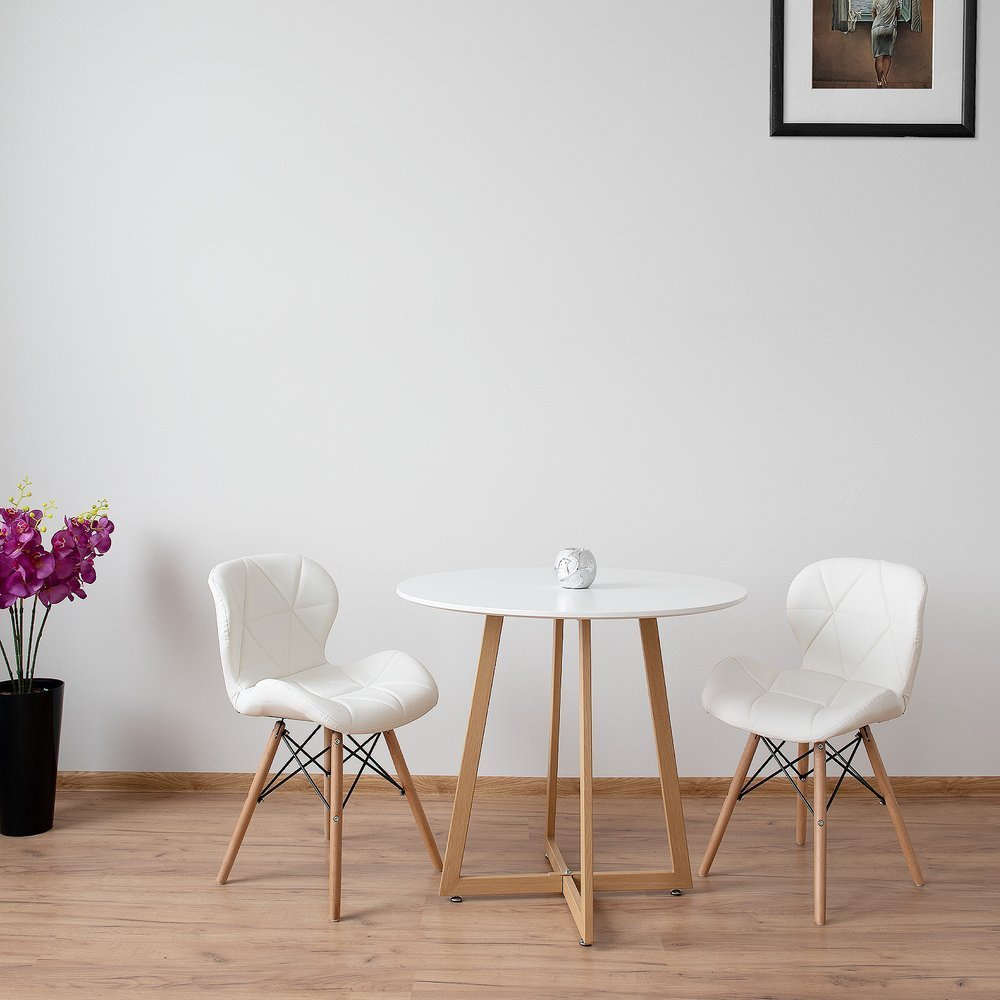 średnicy 80 cm z laminowanej płyty w kolorze białym,