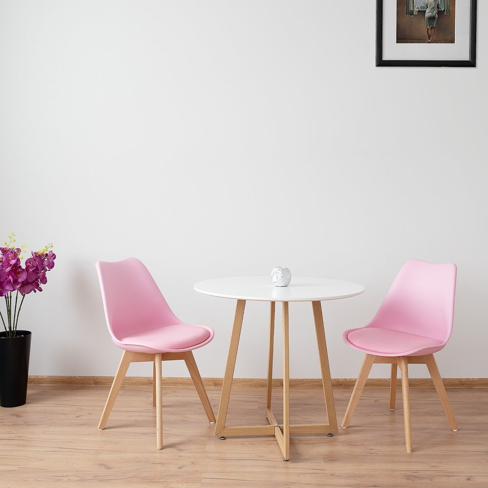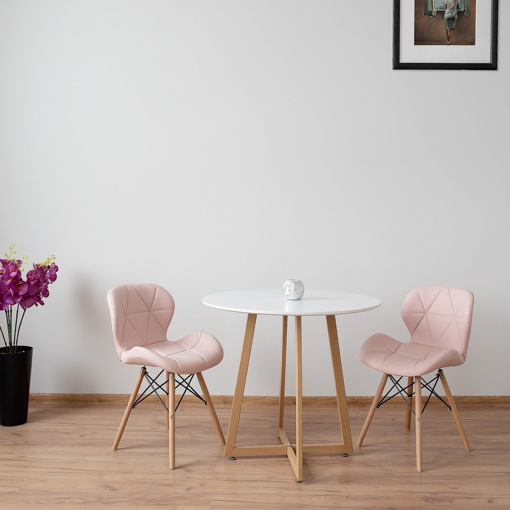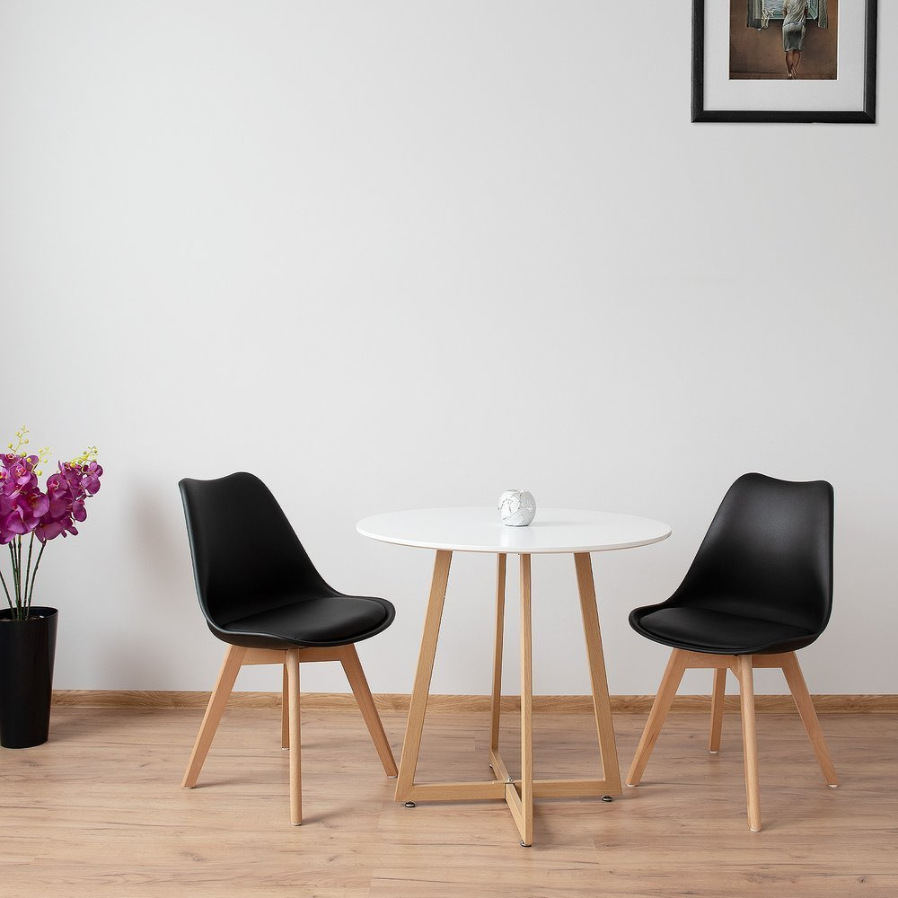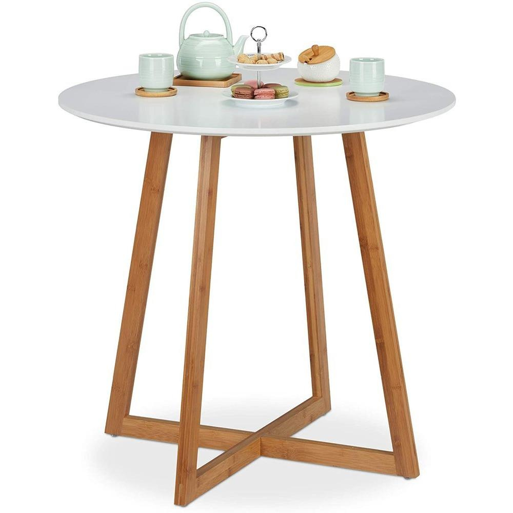 średnicy 80 cm z laminowanej płyty w kolorze białym,