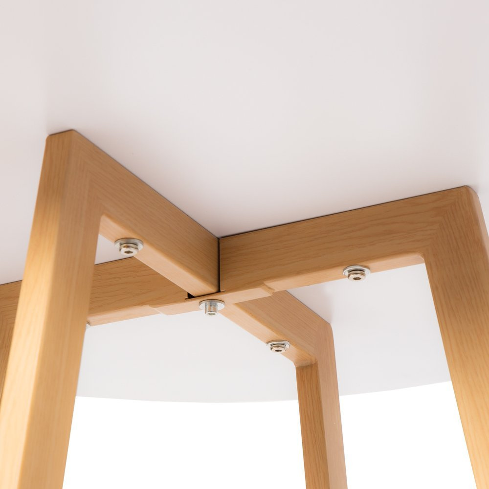 podstawa mebla nadaje stolikowi przestrzenności, wykończone wysokiej jakości okleiną w kolorze jasny buk