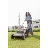 między drzewkami ozdobnymi. Kosiarkę prowadzi się bardzo płynnie i wygodnie.