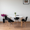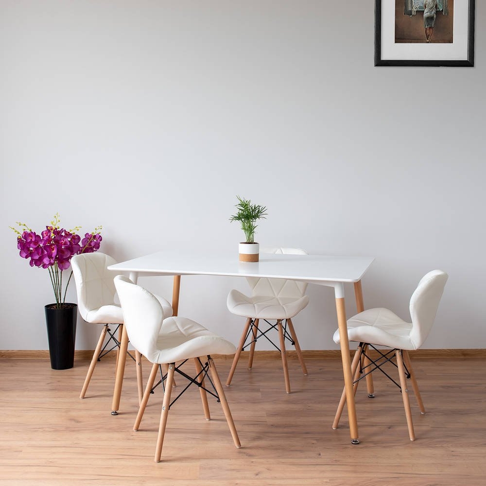 sprawdzą się krzesła również w stylu skandynawskim. Stół jest starannie