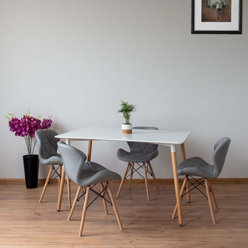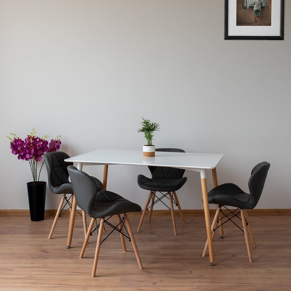 sprawdzą się krzesła również w stylu skandynawskim. Stół jest starannie