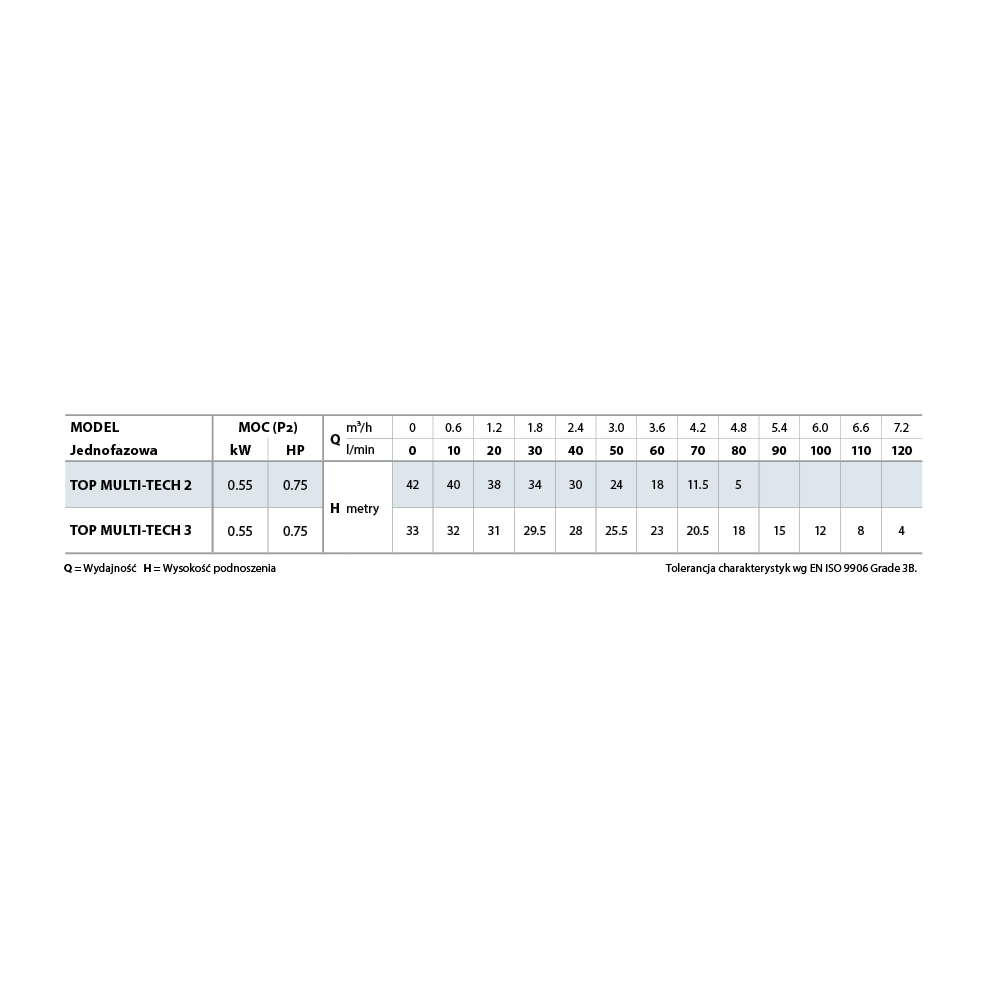 Maksymalna wysokość podnoszenia (m): | 42 |