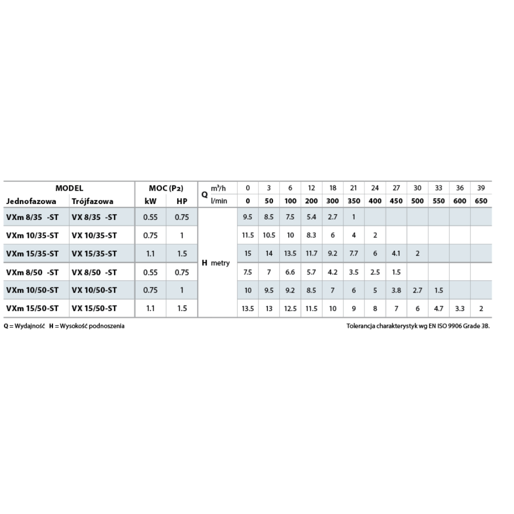 Maksymalna wysokość podnoszenia (m): | 9,5 |