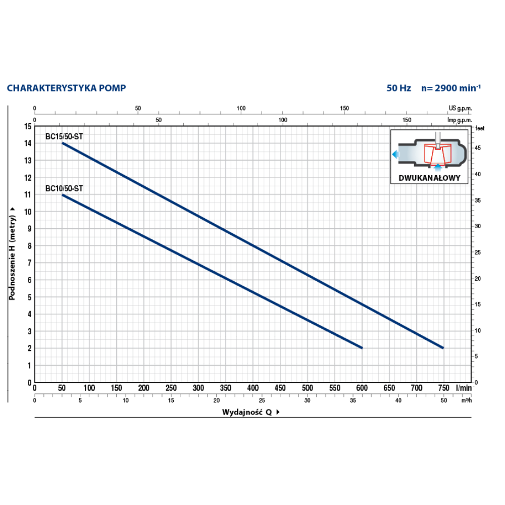 nierdzewnej AISI 304, pompy z tej serii są wyposażone w dwukanałowy wirnik ze