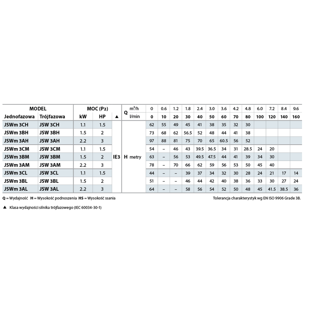 50 Hz z wysokowydajnościowym silnikiem, o klasie