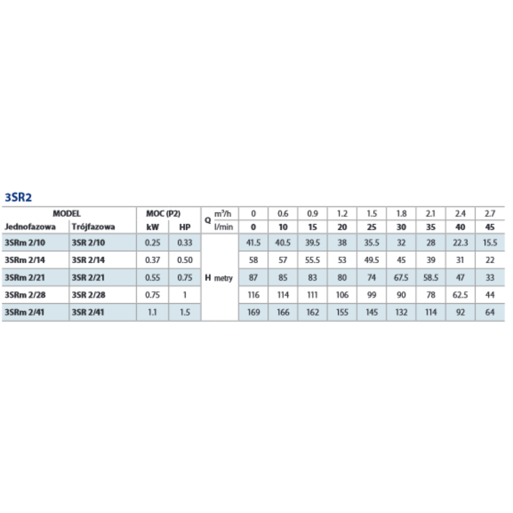 wirniki z delrinu (polioksymetylenu). Pompy 3SR dostępne są w dwóch