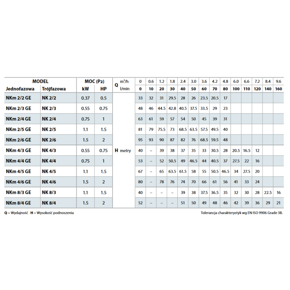 V – 50 Hz o klasie izolacji F i stopniu ochrony IP X8. Pompa istnieje