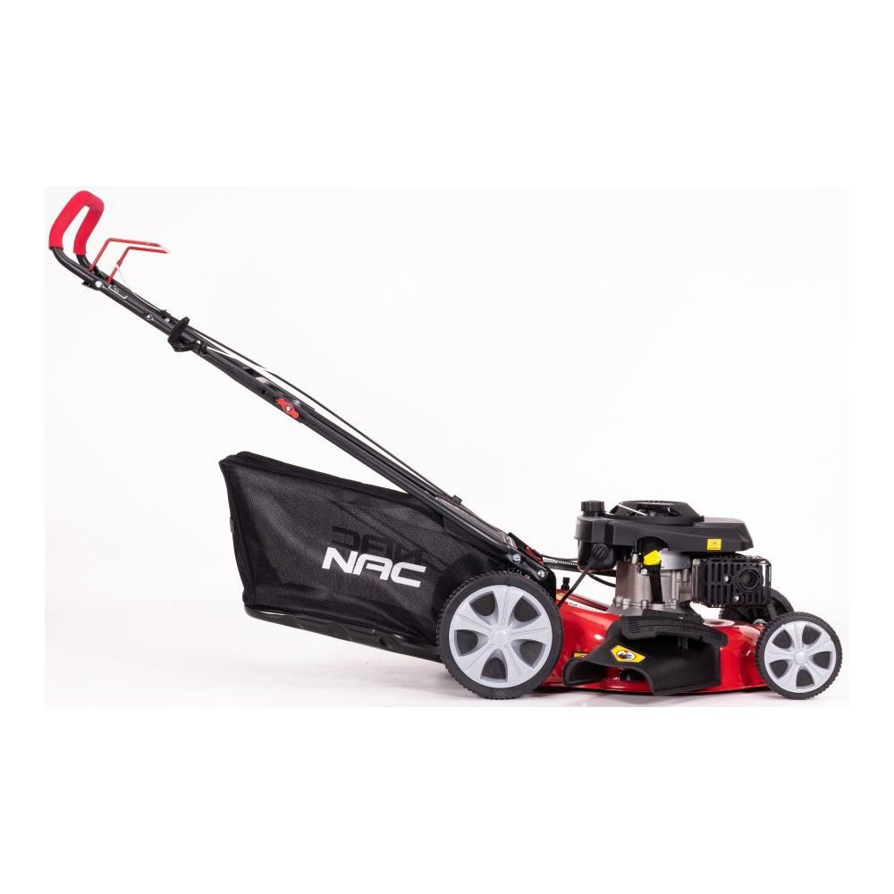 Kosiarka spalinowa bez napędu LP50-146-HS-NG marki NAC z czterosuwowym silnikiem NAC T6 OHV o pojemności 146 cm3 z żeliwną tuleją cylindra. Silnik ten charakteryzuje się bezawaryjnością oraz oszczędnością spalania. Stalowa obudowa kosiarki zapewnia długą trwałość oraz odporność urządzenia na uszkodzenia. System mycia obudowy pozwala natomiast w prosty, szybki sposób umyć wewnętrzną stronę korpusu kosiarki – wystarczy podłączyć wąż ogrodowy.