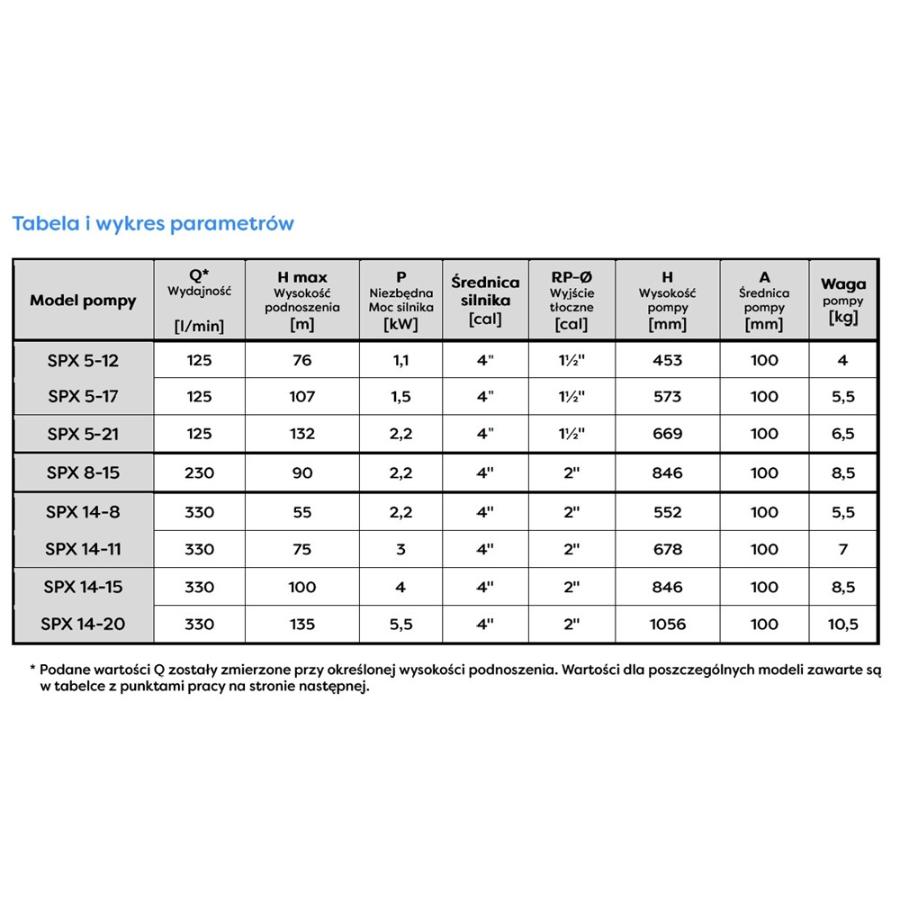 Urządzenia z tej serii wyróżniają się wysoką sprawnością oraz zastosowaniem najwyższej klasy materiałów. Pompy serii 4SPX wykonane zostały w całości ze stali nierdzewnej: obudowa, wał pompy, wirniki, dyfuzory, sito wlotowe, króciec tłoczny, króciec ssący. Praktycznym rozwiązaniem jest ponadto stalowa osłona kabla, która chroni go przed przetarciami w czasie pracy pompy.