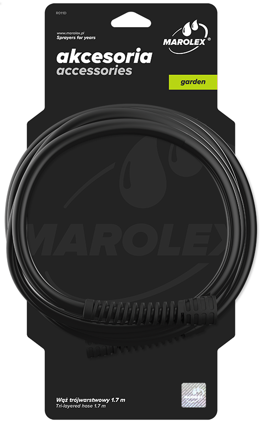 Wyjątkowo wytrzymały 3-warstwowy wąż ciśnieniowy przeznaczony do środków ochrony roślin i lekkich chemikaliów. Jego długość pozwala na komfortową pracę z opryskiwaczem o dowolnej pojemności i sposobie noszenia.W komplecie z wężem są nakrętki ze sprężyną, eliminujące całkowicie możliwość załamania węża przy rączce oraz zbiorniku opryskiwacza. Pasuje on do opryskiwaczy z serii