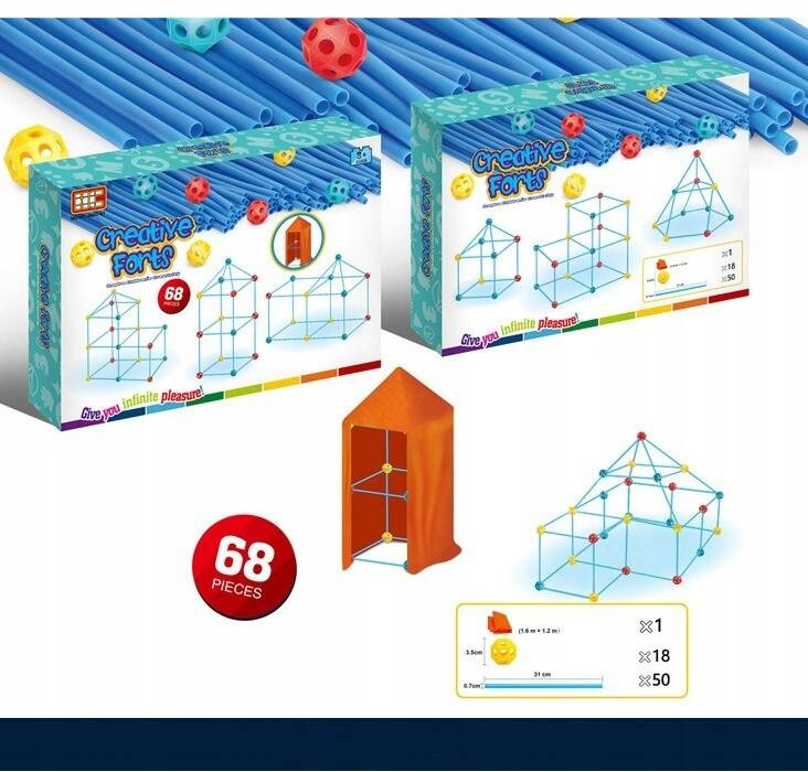 Namiot Baza Domek Rurki Zestaw Kreatywny Do Budowania 68 el.