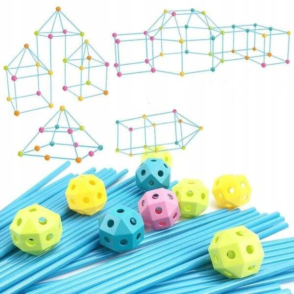 Zestaw kreatywny do budowy domków, zamków i namiotów oraz tworzenia prawdziwej dziecięcej bazy to niezwykła przygoda, która zapewnia mnóstwo frajdy najmłodszym. Dzięki długim słomkom, połączonym za pomocą specjalnych łączników w formie kuli, maluchy mogą z łatwością stworzyć swoje wymarzone kryjówki, bazy czy zamki. Zabawa ta nie tylko dostarcza rozrywki, ale także wspiera rozwój dziecka.