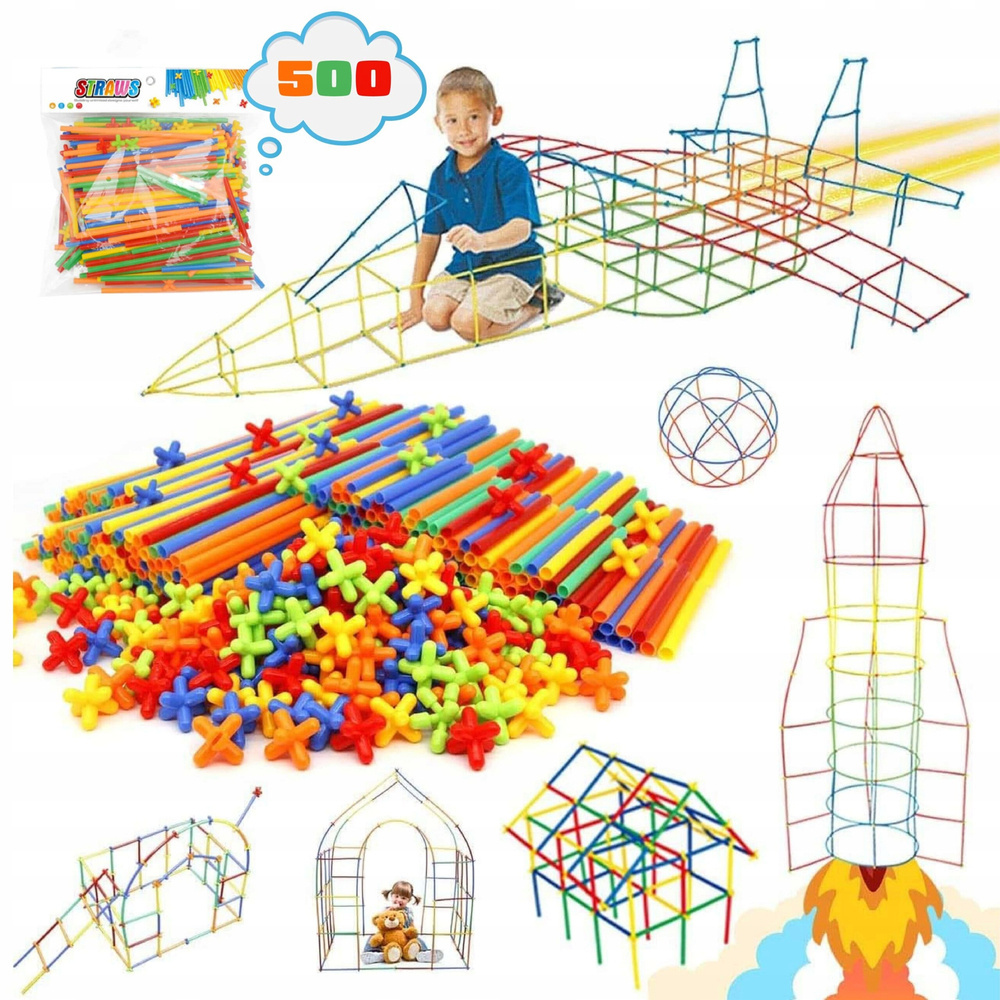 Słomki Konstrukcyjne, Klocki, Patyczki 500 el, 3D, Zestaw Kreatywny