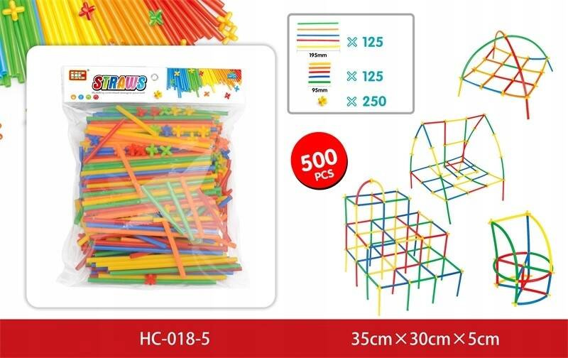 Zestaw słomek konstrukcyjnych to doskonała zabawka dla dzieci już od 3. roku życia. Zawiera aż 500 elementów, które umożliwiają budowę różnorodnych konstrukcji, takich jak wieże, pojazdy, mosty czy budynki. Słomki doskonale łączą się za pomocą różnorodnych łączników i są dostępne w wielu kolorach, co dodatkowo pobudza kreatywność dziecka.