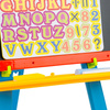 Umieszczone u góry specjalne zaciski umożliwiają zawieszanie kartek. Tablica wyposażona jest w: półeczkę na przybory do rysowania, kredę i kolorowe literki z magnesami bardzo przydatne przy nauce pisania i czytania.