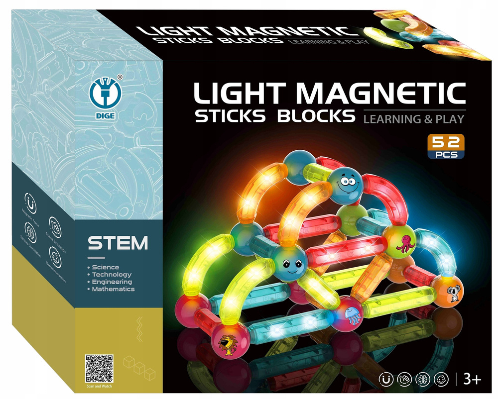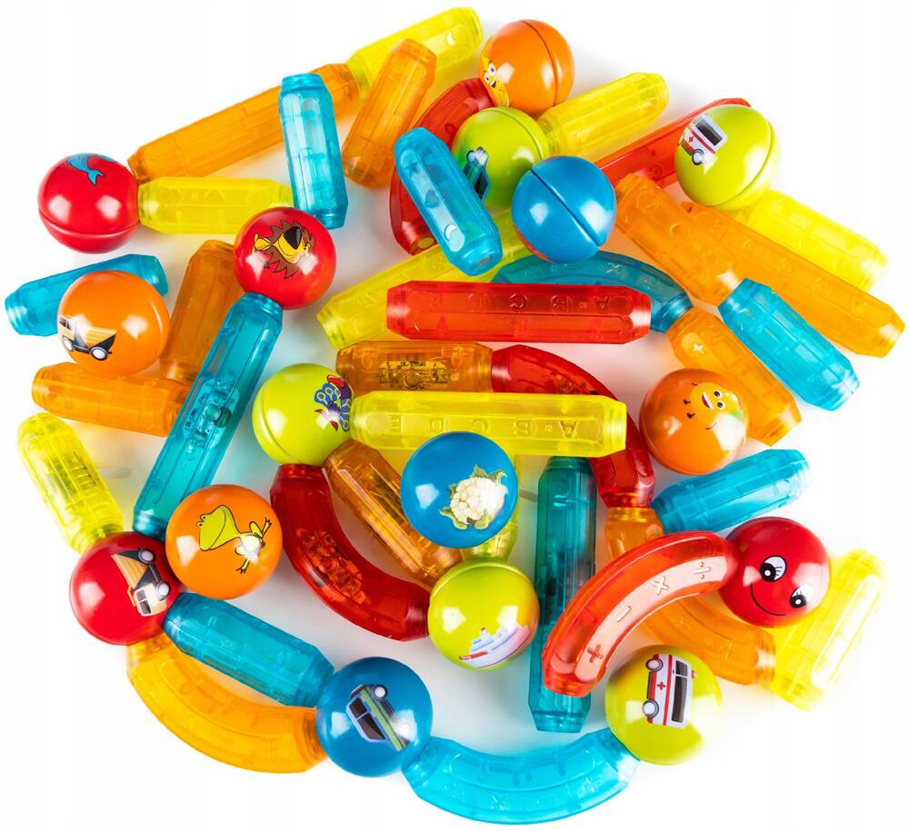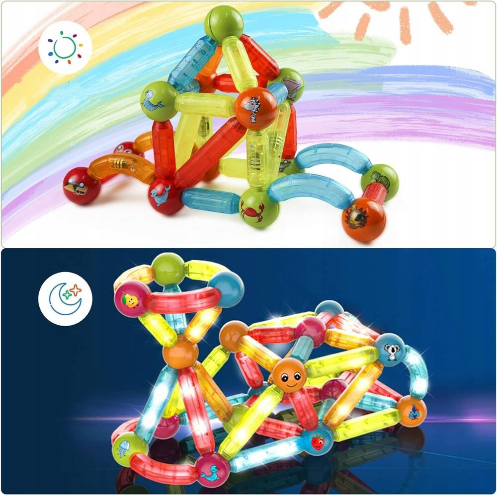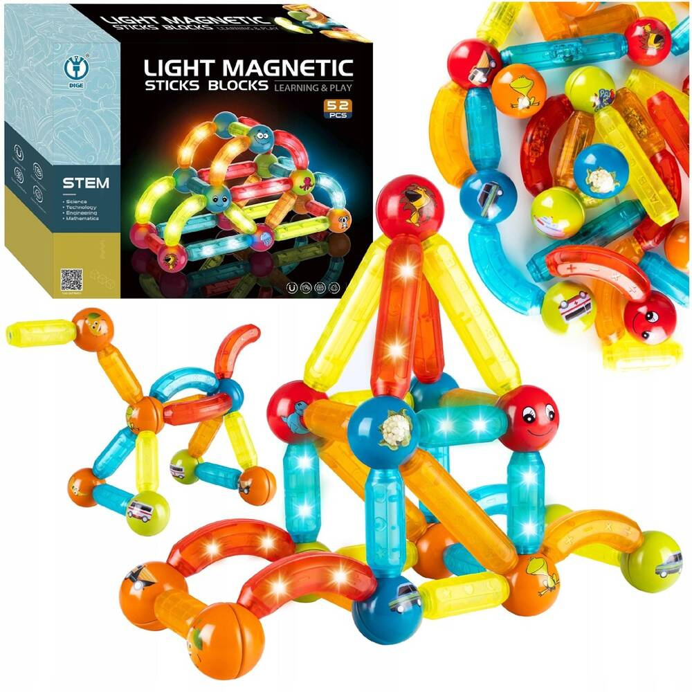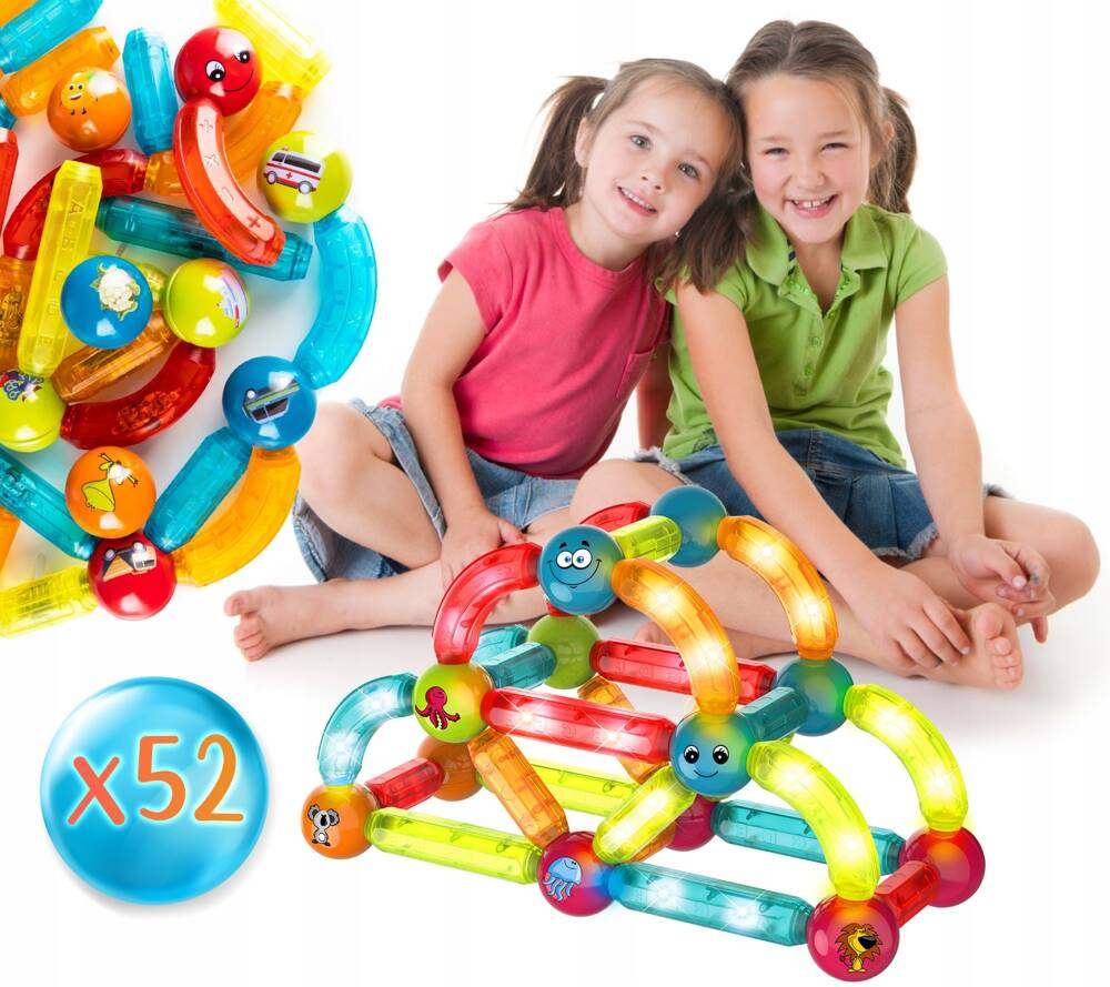 Klocki Patyczki Magnetyczne Kulki Świecące Zestaw 52el