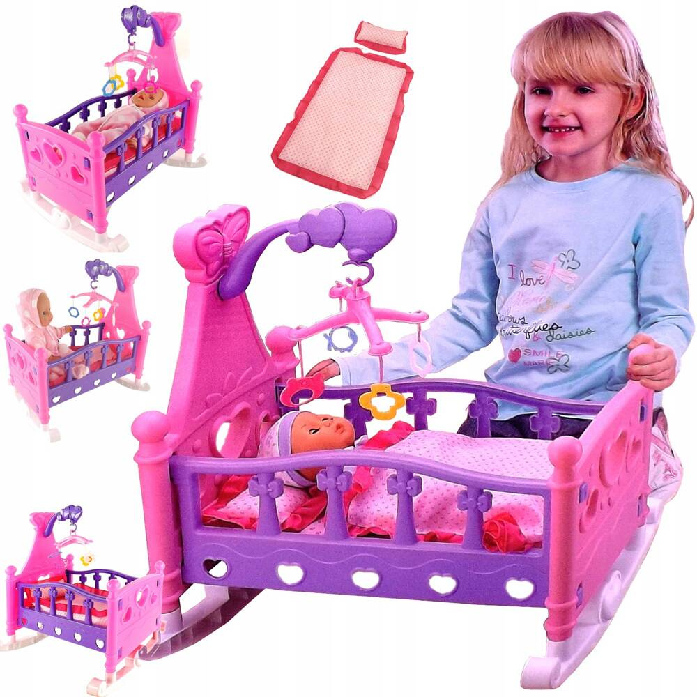 Łóżeczko Dla Lalek Kołyska Karuzela Pościel Duże