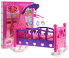 Urocze, bogato wyposażone łóżeczko z kolorową karuzelą z efektami dźwiękowymi, to propozycja dla każdej LALKI do ok. 50 cm.