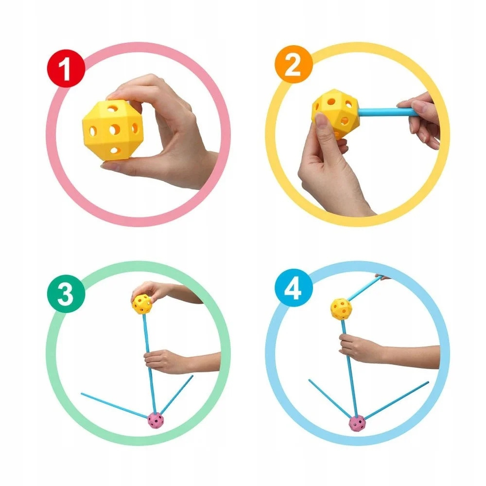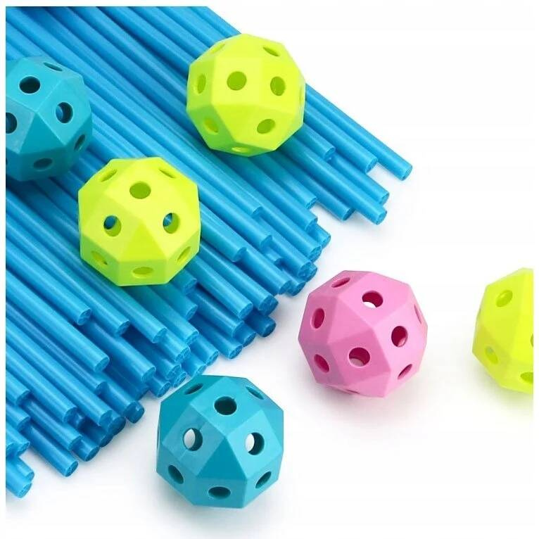 Zestaw kreatywny do budowy domków, zamków i namiotów oraz tworzenia prawdziwej dziecięcej bazy to niezwykła przygoda, która zapewnia mnóstwo frajdy najmłodszym. Dzięki długim słomkom, połączonym za pomocą specjalnych łączników w formie kuli, maluchy mogą z łatwością stworzyć swoje wymarzone kryjówki, bazy czy zamki. Zabawa ta nie tylko dostarcza rozrywki, ale także wspiera rozwój dziecka.