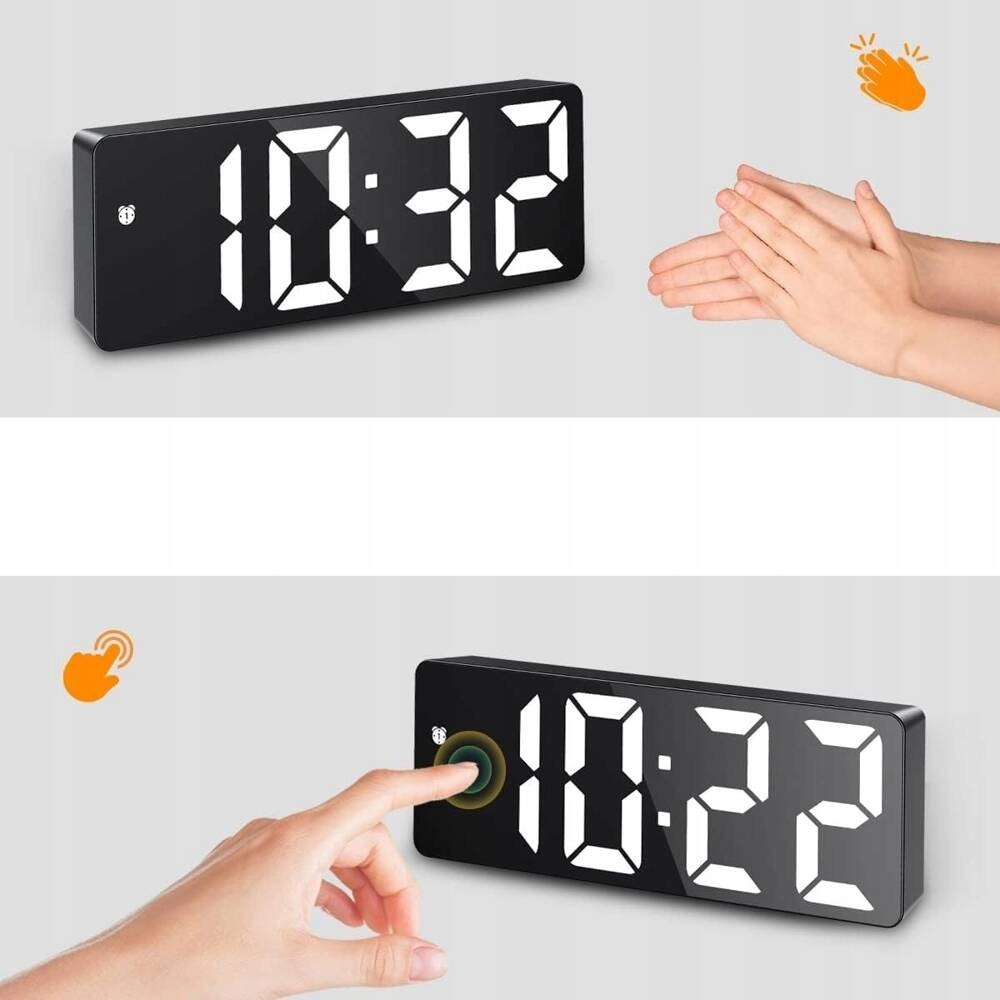 Budzik Zegar Elektroniczny Podświetlenie LED Termometr Reaguje na Dżwięk