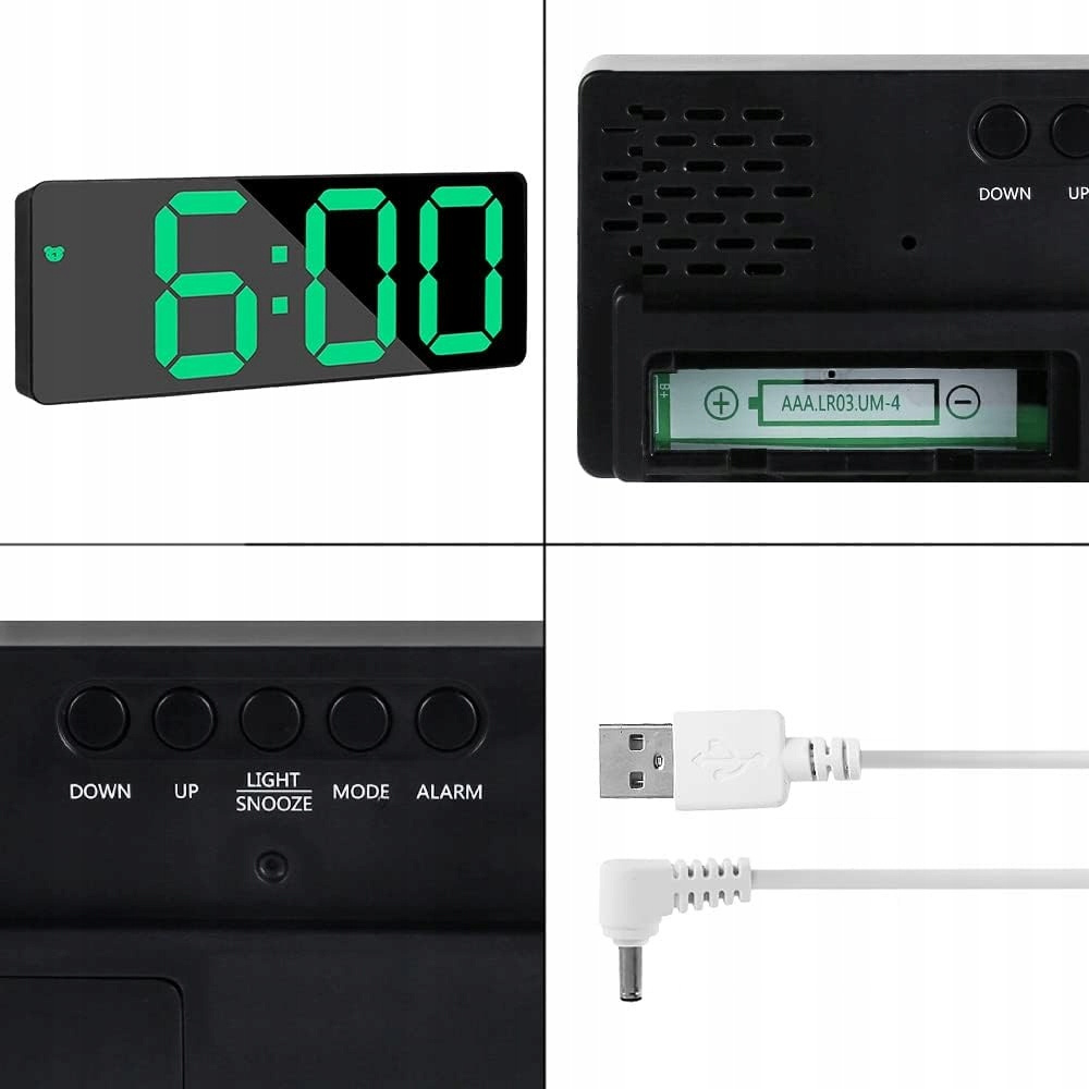 Cyfrowy budzik jest wyposażony w duży ekran 16,5/2,5cm i duże czcionki, można łatwo przeczytać cyfrowy wyświetlacz. Obsługuje zasilanie USB i zasilanie bateriami AAA. Ten budzik ma funkcję pamięci czasu podczas korzystania z baterii AAA.