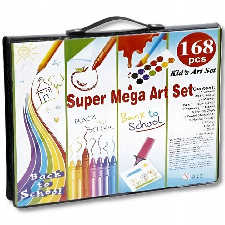 Wyposażony w imponujący wybór 24 kredki i 24 mazaki, 48 pasteli olejowych oraz 12 farb akwarelowych, ten zestaw stwarza warunki do stworzenia najbardziej wyrafinowanych, kreatywnych i oryginalnych dzieł sztuki. Dodatkowo, obfitość pędzli, temperówek, ołówków i gumek do wymazywania zapewnia kompletny zestaw do wyrażania się poprzez sztukę.