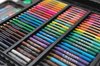 Wszystkie te bogactwa są schludnie umieszczone w solidnej walizce z tworzywa sztucznego, co sprawia, że transportowanie zestawu jest łatwe i wygodne. Wyposażona w praktyczny uchwyt, walizka umożliwia wygodne przenoszenie wszędzie tam, gdzie twórcza dusza pragnie się wyrazić.