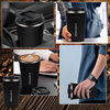 • Szczelna i antypoślizgowa konstrukcja: Pokrywka kubka do kawy jest wyposażona w hermetyczną silikonową uszczelkę, która zapobiega rozlewaniu napojów. Kubek termiczny wykonany jest z matowego materiału, dzięki czemu filiżanka dobrze leży w dłoni i delikatnie dopasowuje się do dłoni. Silikonowa podstawa zapewnia stabilność kubka i zapobiega jego przesuwaniu się. Kubek do kawy pasuje do większości standardowych uchwytów samochodowych,