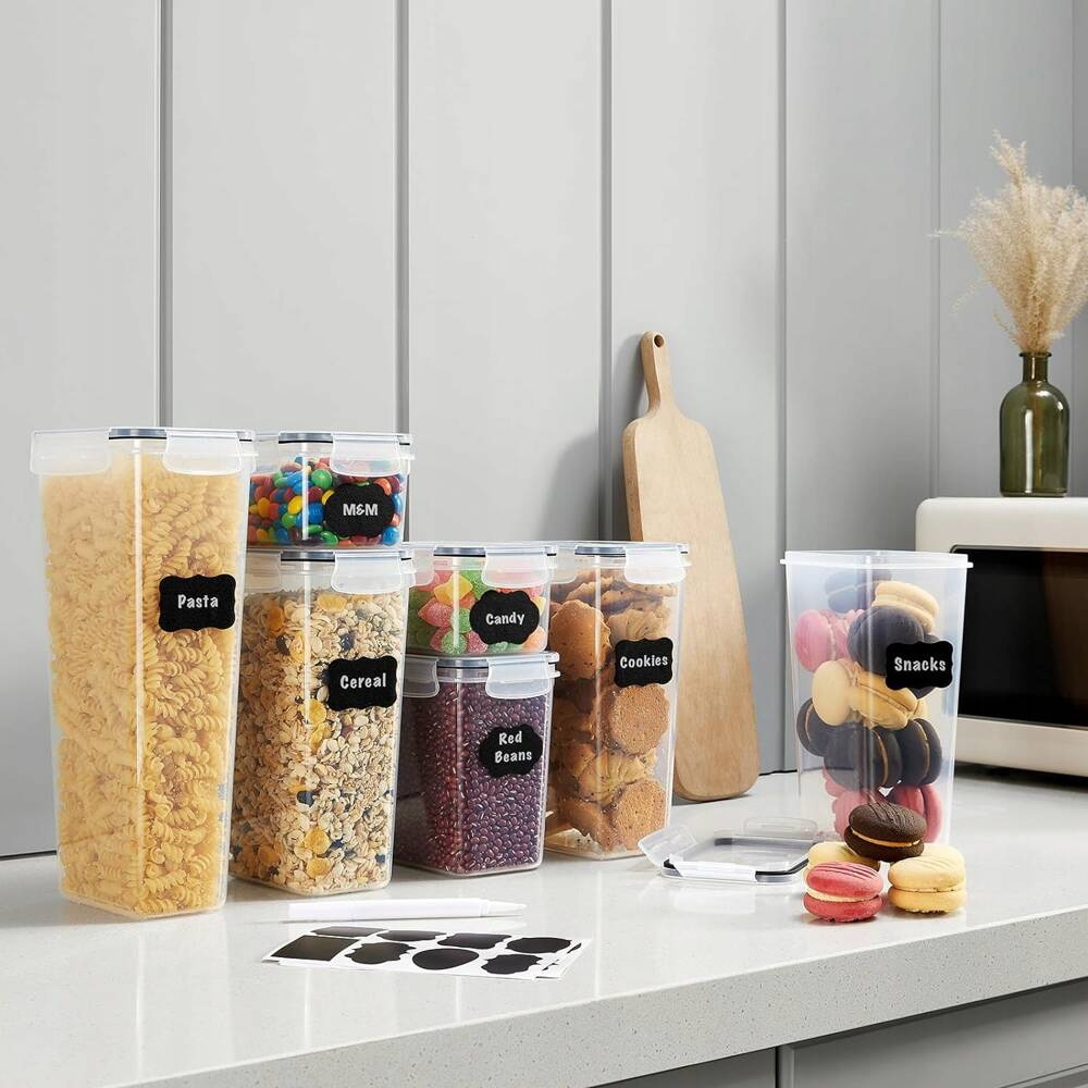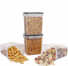 Ulepszone, szczelne przechowywanie, skutecznie izoluje wilgoć z zewnątrz i zapobiega psuciu się żywności. W szczelnej, zamykanej z 4 stron pokrywie można przechowywać różnorodne produkty spożywcze, takie jak zboża, mąka, cukier, kawa, ryż, zboża, fasola, orzechy, smakołyki, karma dla zwierząt domowych, artykuły do pieczenia i inne.