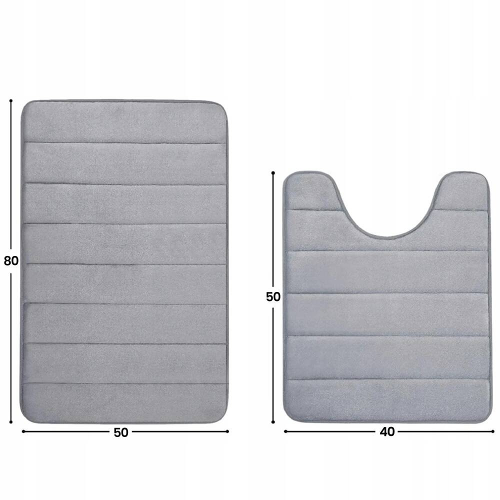 Nasz zestaw łazienkowy charakteryzuje się odpowiednimi rozmiarami – 50 x 80 cm oraz 50 x 40 cm z nacięciem w kształcie litery U, co sprawia, że są one idealne dla różnych konfiguracji toalet. Dodatkowo, elegancki szary kolor dywaników pasuje do każdego wystroju łazienki.