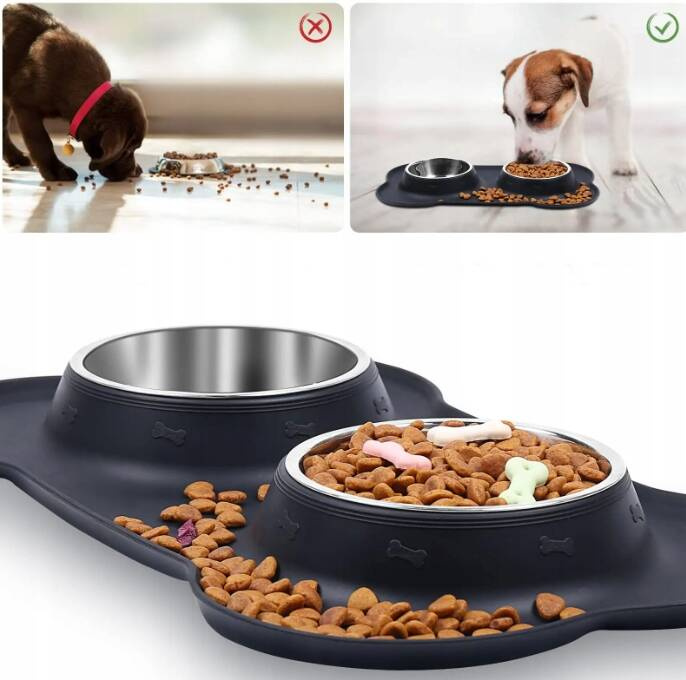 Dzięki przemyślanej konstrukcji i połączeniu z silikonową podstawką, zapobiega brudzeniu się podłogi wokół miski