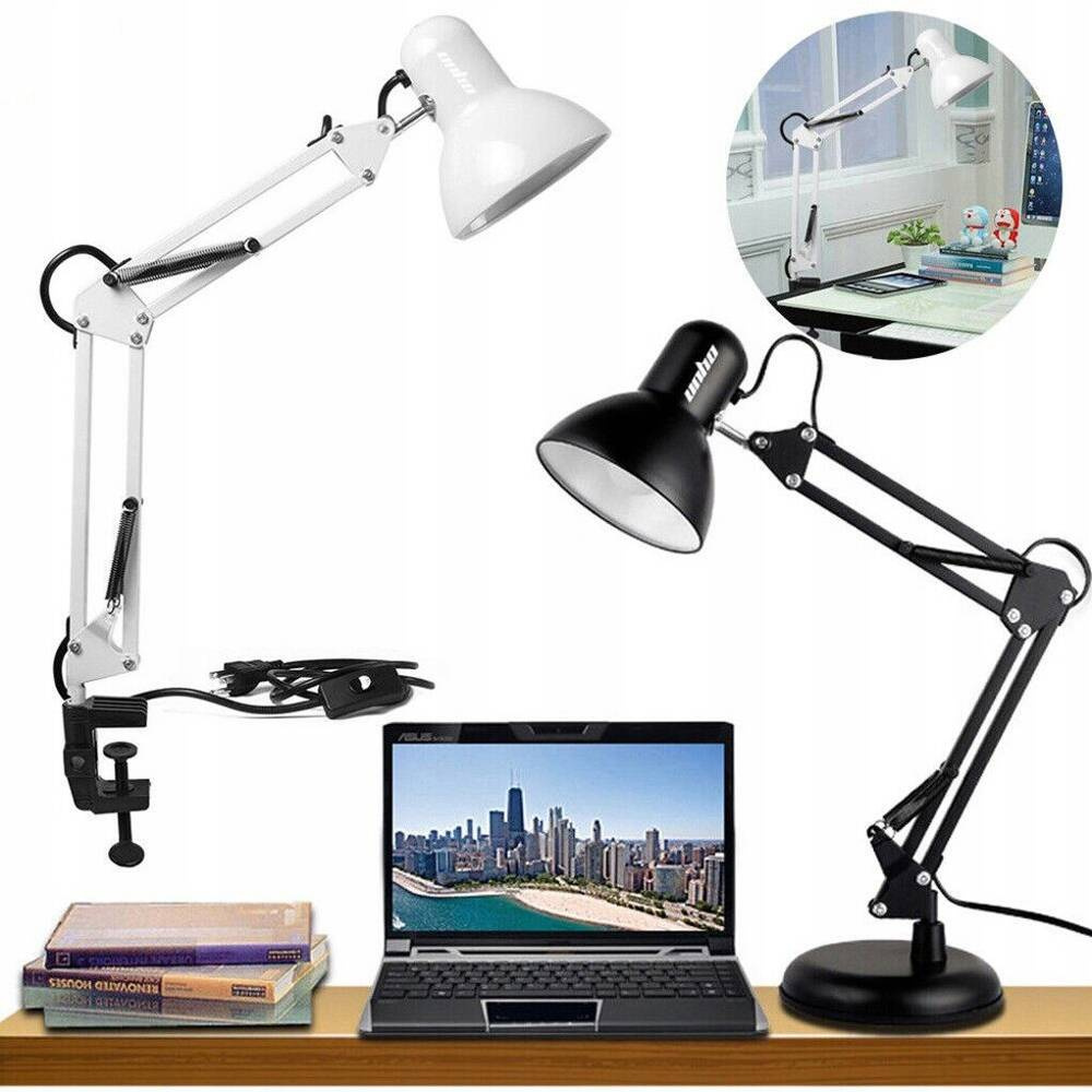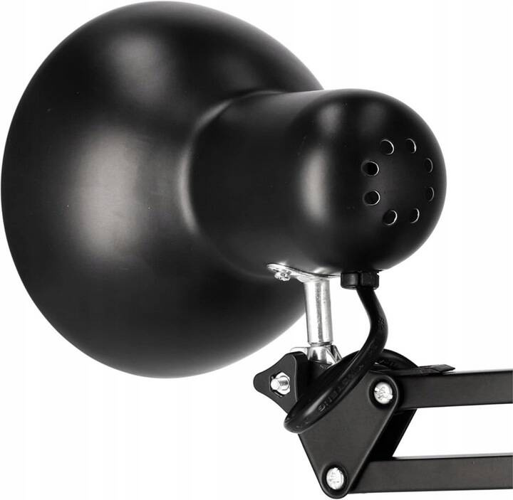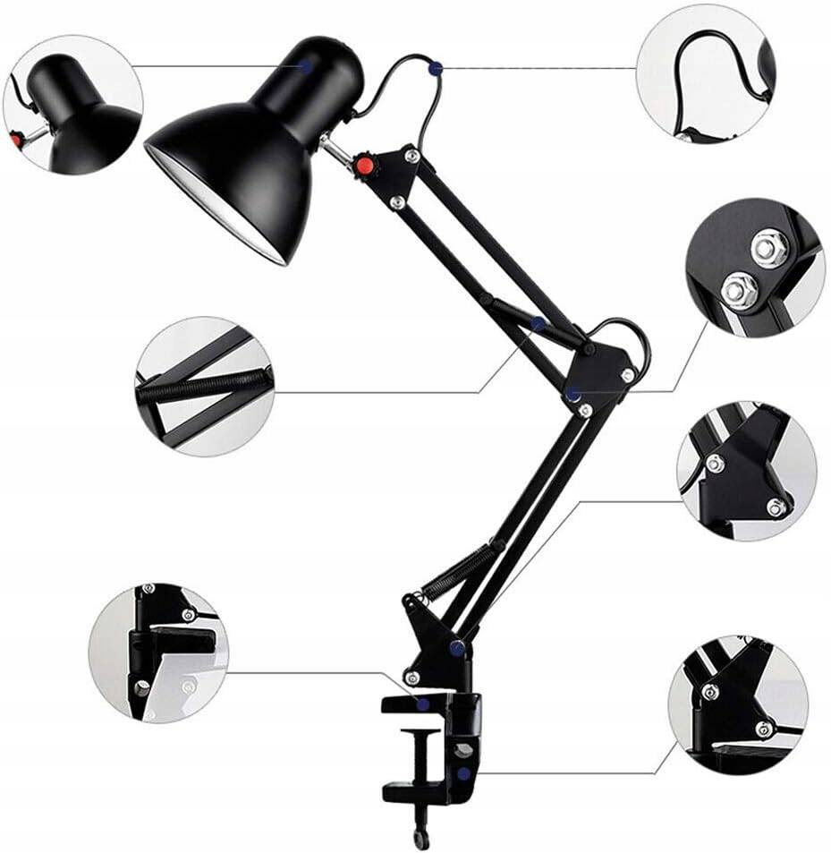Ruchome, regulowane ramię umożliwia dostosowanie kąta padania światła, co zapewnia optymalne oświetlenie miejsca pracy. Lampka jest wyposażona w standardowy gwint E27, który obsługuje różne rodzaje żarówek (maksymalna moc 60W).