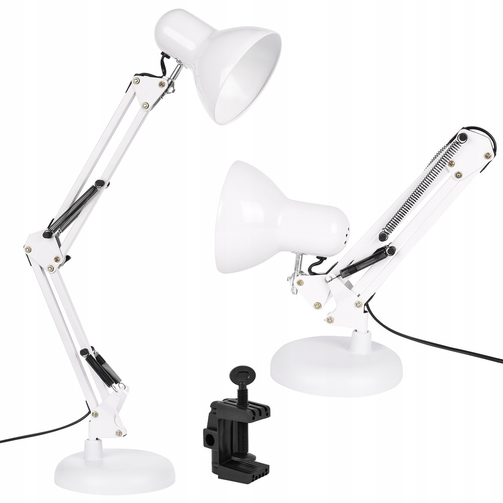 Ruchome, regulowane ramię umożliwia dostosowanie kąta padania światła, co zapewnia optymalne oświetlenie miejsca pracy. Lampka jest wyposażona w standardowy gwint E27, który obsługuje różne rodzaje żarówek (maksymalna moc 60W).