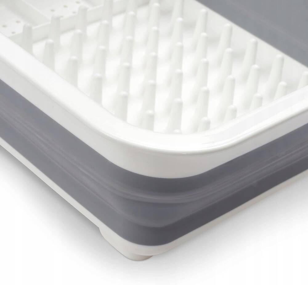 Dzięki otworom odprowadzającym wodę suszarka zapewnia pełną ochronę przed gromadzeniem wilgoci, a jej wielofunkcyjność sprawi, że stanie się niezastąpionym elementem każdej kuchni – i to bez względu na to, gdzie jesteś! Kolor biało-szary doskonale wkomponuje się w nowoczesne wnętrza.