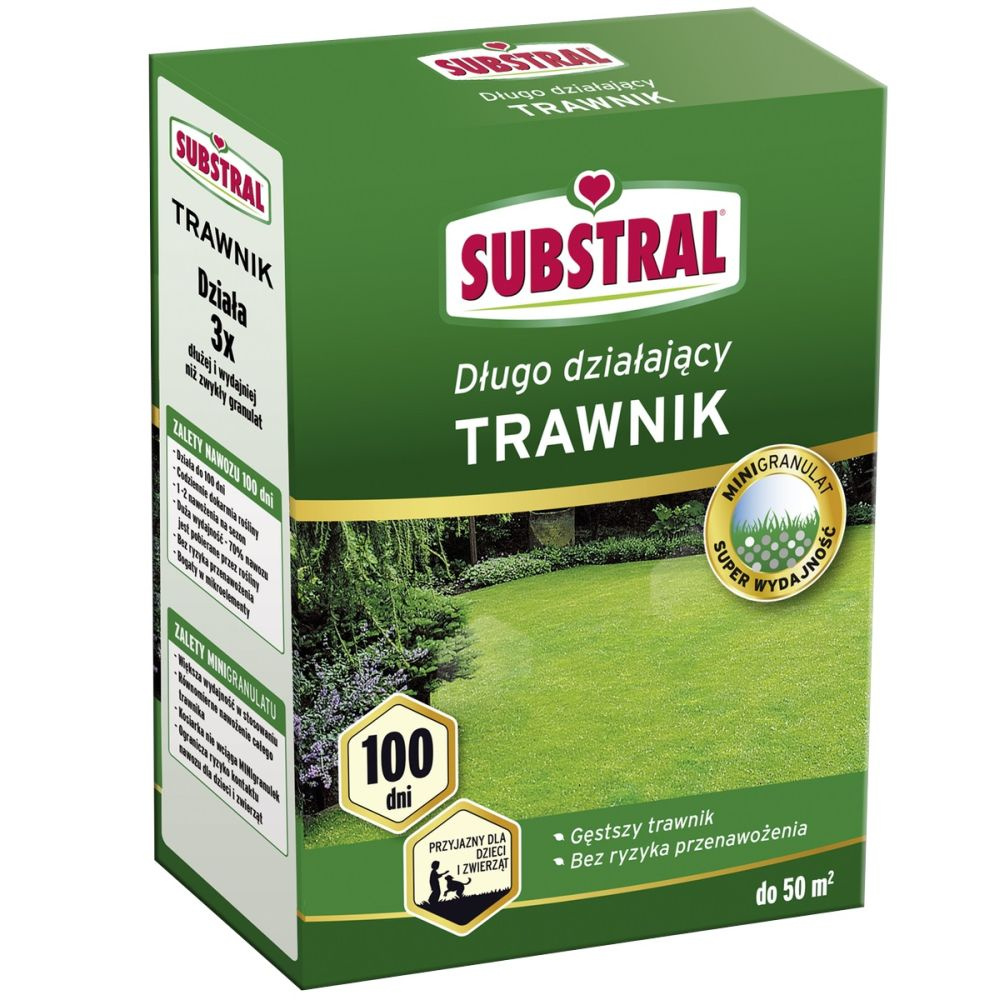 Substral wydajny nawóz długodziałający „100 Dni” do trawników. Znajdzie zastosowanie zarówno przy nowo zakładanych, jak i już istniejących trawnikach. Jest odpowiedni także do powierzchni intensywnie użytkowanych, jak trawniki sportowe, pola golfowe itd.