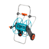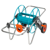 Bardzo odporny i trwały wózek metalowy doskonale przystosowany do długich węży. Malowany proszkowo metalowy bęben charakteryzuje się duża stabilnością i mieści do 100 m węża 13 mm (1/2"), do 80 m węża 15 mm (5/8"), do 50 m węża 19 mm (3/4") lub do 25 m węża 25 mm (1"). Wyposażony w rolkę prowadzącą umieszczoną nad metalowym malowanym proszkowo bębnem , która w połączeniu ze swobodnie obracający się uchwytem korby ułatwia warstwowe zwijanie węża. . Jest bardzo stabilny z powodu szerokiej podstawy . Można go również położyć poziomo na ziemi w przypadku ciągnięcia dużego odcinka węża . Koła mają specjalny bieżnik, który nie niszczy trawnika , a jednocześnie zapewnia dobrą przyczepność i ułatwia prowadzenie wózka . Zintegrowana blokada nie pozwala na wyciekanie wody po zakończeniu podlewania lub podczas transportu. Skośne podłączenie do bębna zapobiega zaginaniu węża i gwarantuje zawsze pełny przepływ wody. Można używać z Gardena Profi- System przy pomocy przyłącza kranowego 2801. W komplecie przyłącza 2 x art.2801.