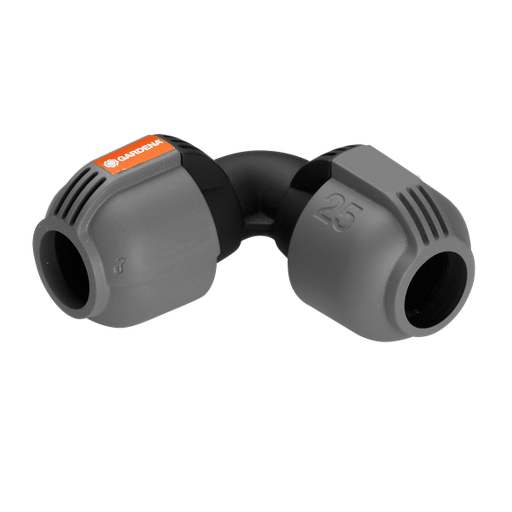 GARDENA łącznik L 25 mm umożliwia zmianę kierunku przebiegu rury montażowej. Opatentowana szybka i łatwa technika łączenia "Quick & Easy" ułatwia montaż lub demontaż rury bez użycia narzędzi, poprzez przekręcenie złącza gwintowego o 140°.