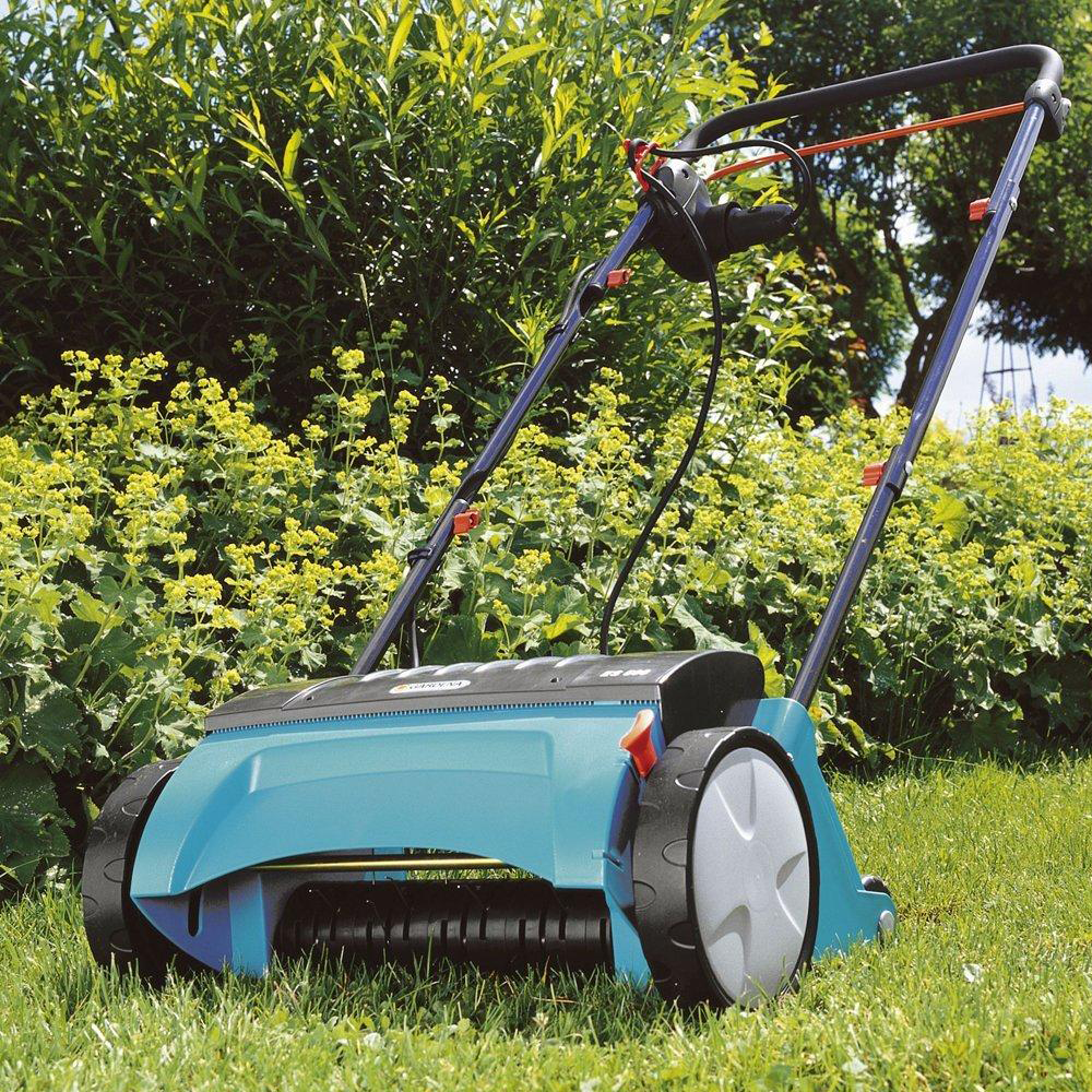 Odporne na zużycie i hartowane sprężyny ze stali nierdzewnej przeczesują trawnik i skutecznie usuwają sfilcowaną trawę, chwasty i mech. W sytuacji kiedy dojdzie do przesunięcia sprężyn ze stali nierdzewnej można je łatwo wyregulować za pomocą poręcznej dźwigni. W celu przeniesienia na miejsce pracy można łatwo i szybko złożyć noże, tak aby urządzenie przybrało postać transportową. Rączkę elektrycznego wertykulatora można szybko odłączyć w celu zaoszczędzenia miejsca składowania i ułatwienia transportu.