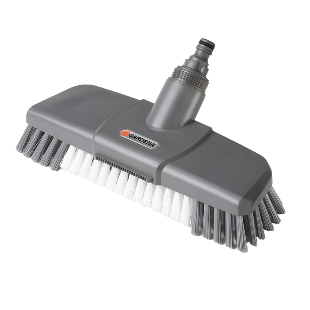 GARDENA komfortowa szczotka do szorowania jest narzędziem, które można podłączyć do wszystkich trzonków przepływowych z linii Original GARDENA Cleansystem. Szczotka pozwala na usunięcie nawet tego najbardziej uporczywego brudu. Różne długości włosia zapewaniają skuteczne czyszczenie, szczególnie na nierównym podłożu, w fugach i zagłębieniach. Komfortowa szczotka do szorowania szczególnie dobrze nadaje się do dokładnego czyszczenia odpornych powierzchni podłoża, takich jak podłogi tarasowe, podjazdy do garażu, ścieżki itp. Szerokość robocza wynosi 27 cm. Specjalna dysza o płaskim strumieniu oraz skrobak ułatwiają uzyskanie doskonałych efektów pracy.