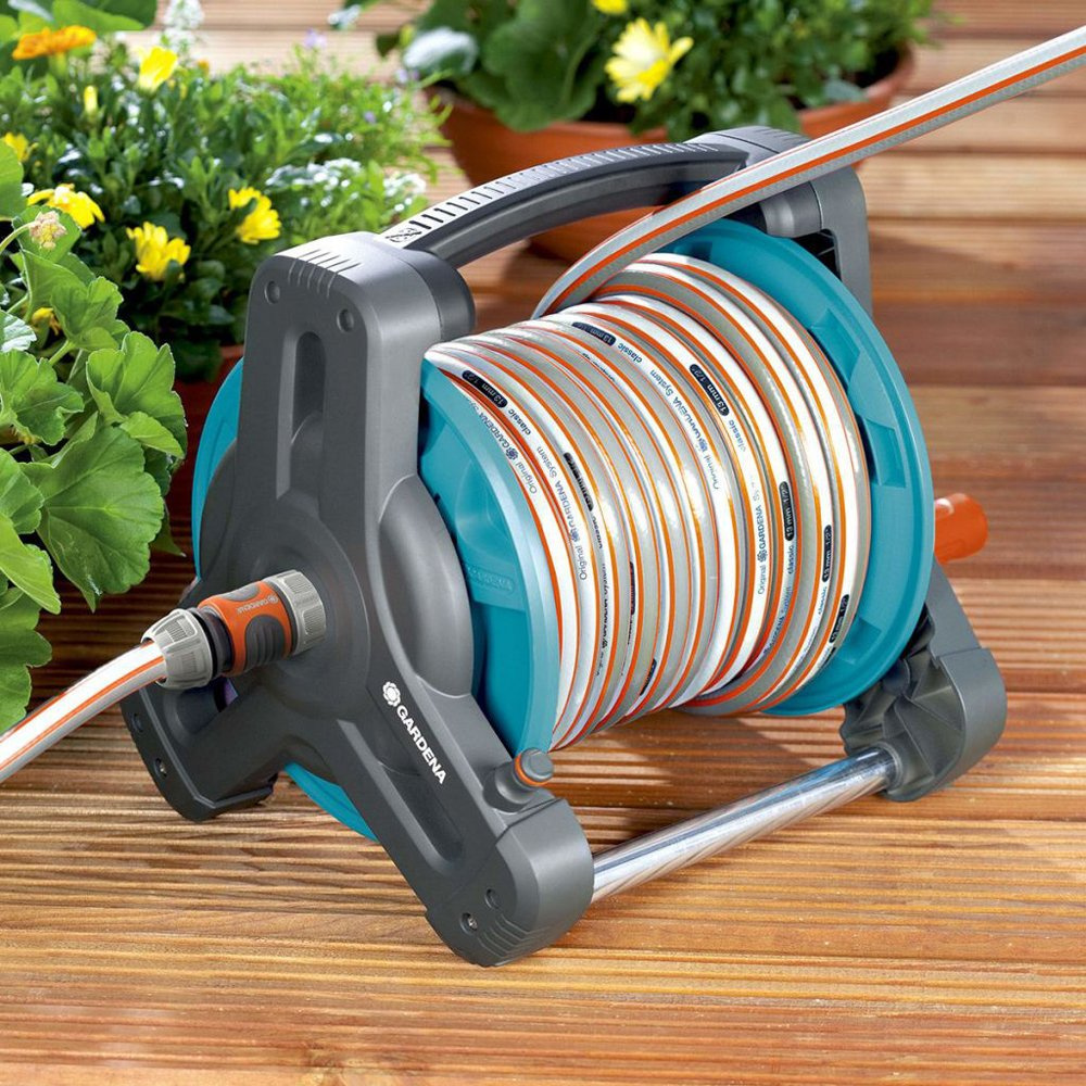GARDENA Classic nosidło na wąż 10 to urządzenie wszechstronne, które zajmuje mało miejsca. Niska masa sprawie, że jest łatwy w przenoszeniu i umożliwia bezpieczne przechowywanie węża. Jest to idealne rozwiązanie do małych ogrodów, tarasów i balkonów. Ergonomiczny uchwyt pozwala na wygodne przenoszenie i używanie w dowolnym miejscu. Swobodnie obracający się uchwyt korby ułatwia obsługę nosidła. Uchwyt korby można złożyć, co pozwala zaoszczędzić miejsce podczas przechowywania.