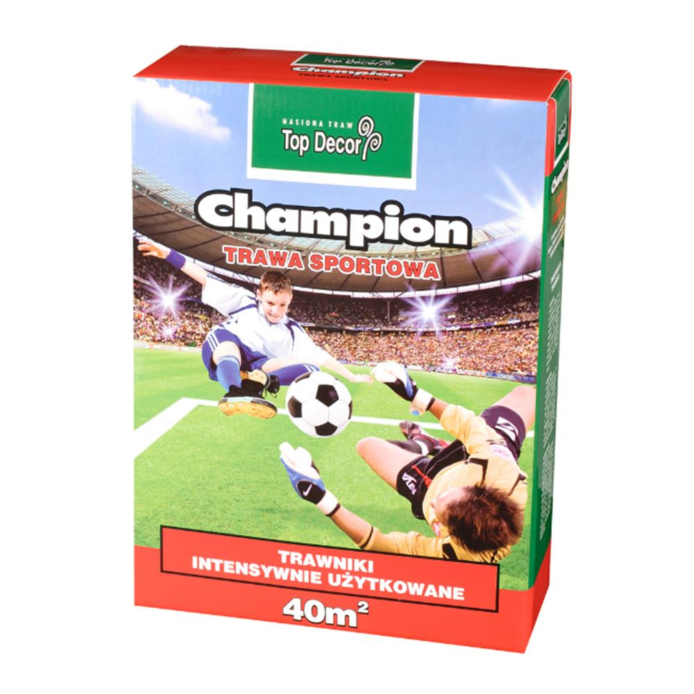 Mieszanka nasion traw Champion marki Top Decor przeznaczonych do użytkowania na terenach intensywnie używanych, takich jak- boiska sportowe, place zabaw oraz inne. Jest to trawa o wysokich walorach dekoracyjnych oraz bardzo wysokiej odporności na choroby.