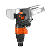 Głowicę Premium zraszacza bijakowego dookolnego i sektorowego można łatwo przykręcić do statywu lub rury nawadniającej. Zbudowana z metalu i trwałego tworzywa głowica gwarantuje stabilne działanie, a specjalne pierścienie do regulacji ,pozwalają łatwo ustawić zraszany sektor od 25° do 360°. Zasięg wyrzutu ustawiany za pomocą dużego , prostego w użyciu pokrętła w zakresie od 5 do 12,5 m. Obszar nawadniania możemy wybrać pomiędzy 75 a 490 m2.Zraszacz posiada przyłącze systemowe Gardena oraz korek zamykający. . Gwint przyłączeniowy przykręcany do głowicy zraszacza ma średnicę 21 mm (G 1/2).Premium głowica zraszacza bijakowego dookolnego i sektorowego umożliwia łatwe i ukierunkowane nawadnianie dużych powierzchni.