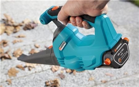 Dmuchawa wygodna i lekka jak miotła, ale znacznie bardziej komfortowa w użyciu. Prędkość strumienia powietrza 190 km/h umożliwia bez trudu i schylania uprzątnąć śmieci, liście i ściętą trawę. Urządzenie jest łatwe i proste w obsłudze dzięki niewielkiemu ciężarowi. Zastosowanie akumulatora litowo-jonowego 18V/2,0 Ah umożliwia wygodną pracę bez kabla. Proste w obsłudze, niezawodne ogniwo można doładować w każdej chwili bez efektu „pamięci“. Zarówno wykonany z miękkich elementów uchwyt jak i cała dmuchawa są ergonomicznie ukształtowane. Dzięki temu jest ona poręczna i wygodna w obsłudze. Dmuchawa posiada kompaktową budowę i zajmuje niewiele miejsca np. w piwnicy, garażu czy szopie. W komplecie znajdują się akumulator i ładowarka. Praktyczne: akumulator można stosować w innych produktach marki GARDENA. Warto to wykorzystać.
