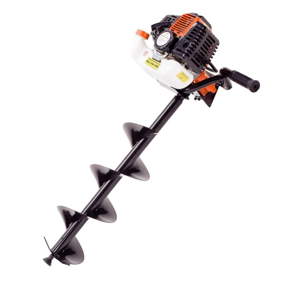 Wiertnica spalinowa TT-GD520 / EAP52-295-T jest nowoczesnym urządzeniem stworzonym z myślą o potrzebach ogrodników, rolników, działkowców, a także budowlańców. Przyda się w czasie wielu różnych prac jak chociażby sadzenie drzew i krzewów, bądź budowa ogrodzenia. Z uwagi na jej wielofunkcyjność, warto dołączyć to urządzenie do obecnego już zestawu narzędzi ogrodowych. Wiertnica została wyposażona w silnik o mocy 2,95 KM, TT1E44F-5 52 cc. Warto również podkreślić, iż jej prędkość obrotowa wynosi aż 3000 obrotów na minutę. To urządzenie zaskakuje pod każdym względem, a każde kolejne jego parametry utwierdzają w przekonaniu, iż jest to naprawdę solidny sprzęt. Wiertnica posiada dość spory zbiornik paliwa, który ma pojemność 1200 ml. Średnica samego świdra wynosi 100 mm, 150 mm, 200 mm, a jego długość zaś 800 mm. W całości urządzenie waży 12 kg. Wiertnica jest bardzo solidnie wykonana, dzięki czemu nie tylko jest trwała czy dobrze wygląda, ale też przede wszystkim jest urządzeniem bezpiecznym w użyciu.